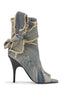 KARTER-DENIM WRAP-AROUND PEEP TOE BOOTIE