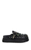 Flatform mule with a western buckle and stud detailing—casual, edgy, and effortlessly on the go-ready.