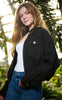 Black denim jacket with subtly sparkling rhinestones—an elevated, modern take on classic denim that adds just the right touch of glam.