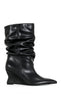 Exhibit A. Point-toe wedge bootie with a relaxed slouch overlay, blending sculptural edge with effortless cool.