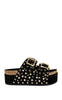Faux suede flatform slip-ons fully covered in embellishments—bold, elevated, and effortlessly statement-making.