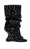 Slouchy faux suede wedge bootie with stud detailing, a peep toe, and a sculptural curved wedge—bold, fashion-forward, and made to stand out.