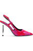 Jacquard fabric amplifies the glamorous appeal of a soirée-ready slingback pump framed by a pointy toe and stiletto heel.